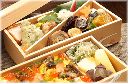 四季折々の旬の味覚を織り交ぜた河合のお弁当を、テイクアウト・仕出しでお楽しみいただけます。その他、新年を祝うおせち料理をはじめ、大切な方への贈り物に最適なプリンやご飯のお供も販売しておりますので、用途に合わせてどうぞ。